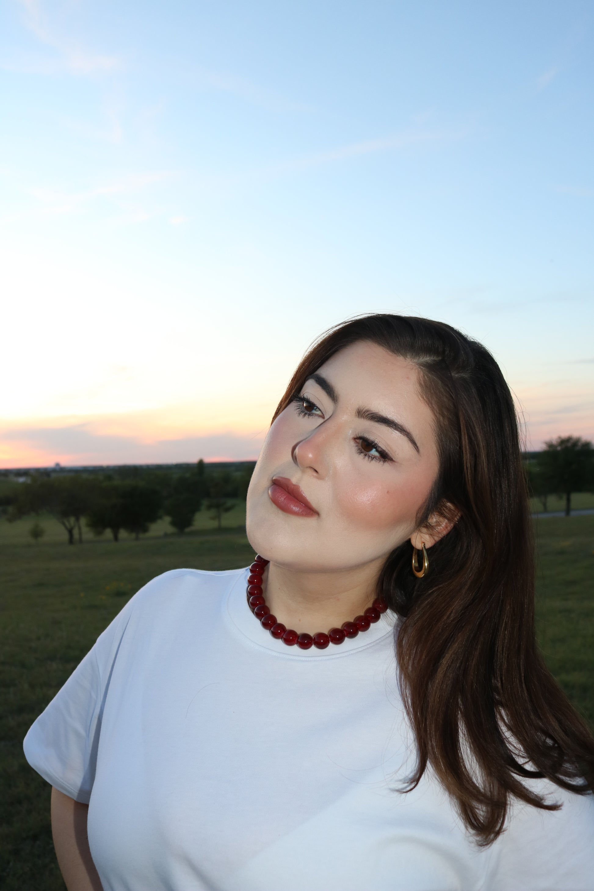 This one is bold, simple, and gets attention without even trying. The deep red glass beads have a glossy finish that catches the light and instantly elevates your look.